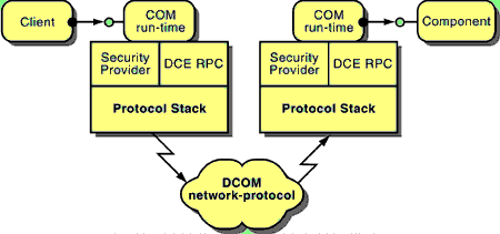 DCOM communication operates roughly as follows: